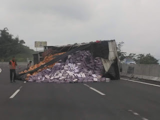 Matalensanews.com - Kecelakaan tunggal terjadi di kawasan tol Bawen KM 26+200, Rabu (30/11)seki tar pukul 13.50 WIB, ini tadi. Dalam kecelakaan ini melibatkan Truk Hino dengan pelat nomor G 1846 GV. Akibatnya truk terguling dan muatan air mineral kocar-kacir di jalan.(Guntur)