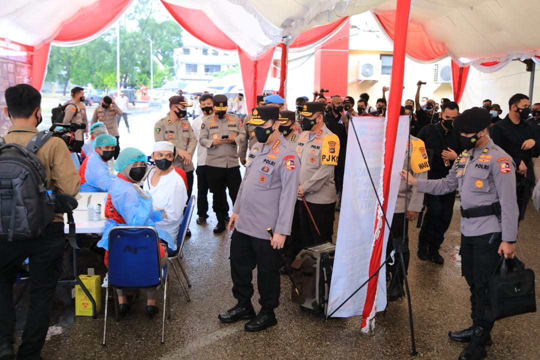 Jakarta,MATALENSANEWS.com-Kapolri Jenderal Listyo Sigit Prabowo melakukan tinjauan vaksinasi di Polda NTT sekaligus menyaksikan langsung donor plasma konvalesen anggota Polri penyitas Covid-19 dalam rangkaian kunjungan kerjanya ke Nusa Tenggara Timur (NTT).