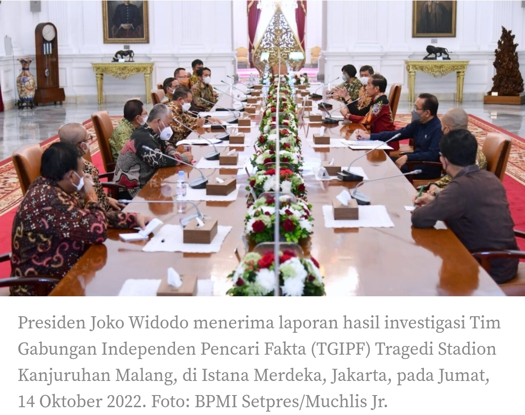 Mahfud juga menyampaikan bahwa TGIPF menyampaikan laporan secara independen. Nantinya, laporan dari TGIPF tersebut akan diolah oleh Presiden Jokowi untuk menjadi bahan pertimbangan terkait kebijakan keolahragaan nasional.