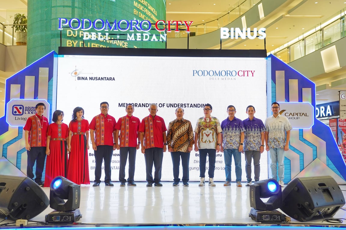 Kami sangat bangga dapat berkolaborasi dengan BINA NUSANTARA dalam menghadirkan fasilitas pendidikan unggulan di Podomoro City Deli Medan. Kerja sama ini bukan hanya sekadar langkah strategis, tetapi juga komitmen kami untuk memberikan kontribusi nyata bagi masyarakat Kota Medan. Keberadaan fasilitas pendidikan ini diharapkan dapat memberikan dampak positif yang luas, baik dari segi sosial maupun ekonomi. Selain membuka peluang kerja selama proses pembangunan, kehadiran fasilitas ini juga akan mendorong pertumbuhan bisnis lokal yang mendukung kebutuhan sivitas akademika. Kami optimis, kolaborasi ini akan menjadi katalisator bagi pengembangan Kota Medan sebagai pusat pertumbuhan baru di Sumatera Utara ujar Yenti Lokat selaku Direktur Marketing Podomoro City Deli Medan.