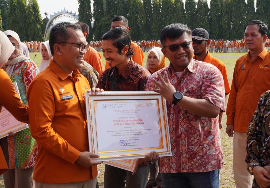 PT Kereta Api Indonesia (Persero) Divre IV Tanjungkarang menorehkan prestasi dengan menerima piagam penghargaan dalam rangka peringatan Hari Statistik Nasional (HSN) Tahun 2025 yang diselenggarakan oleh BPS Provinsi Lampung.